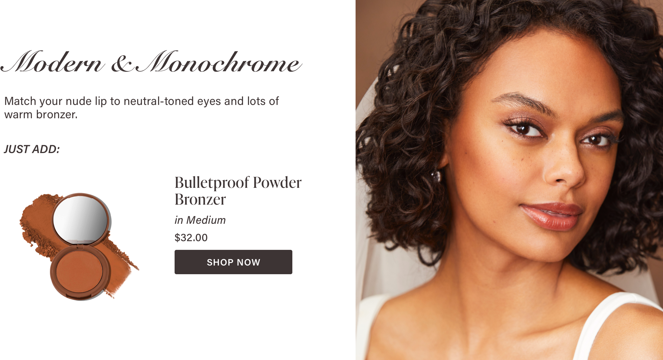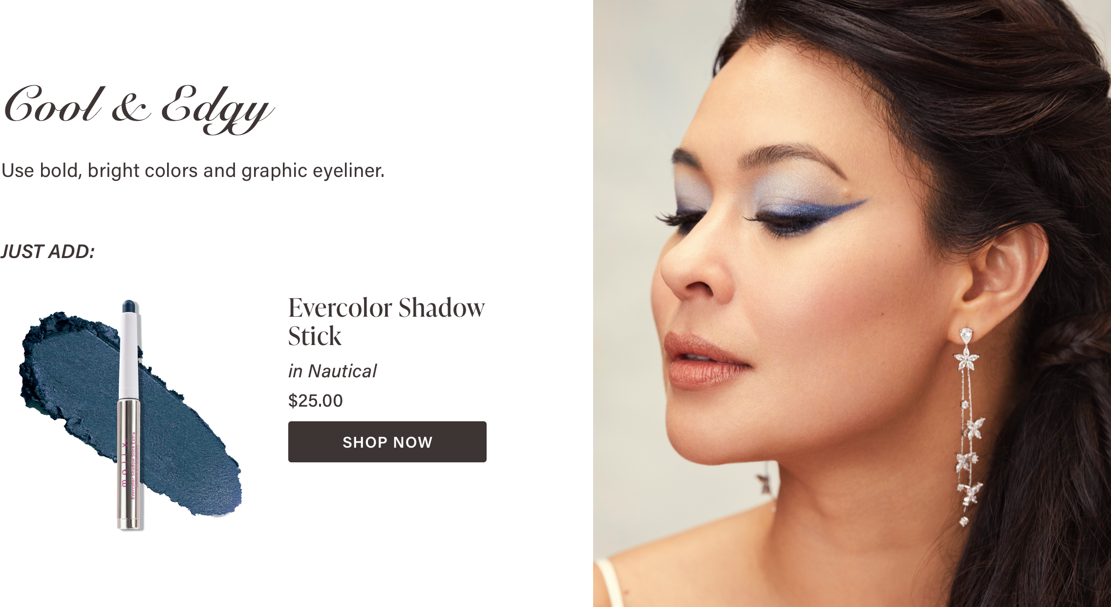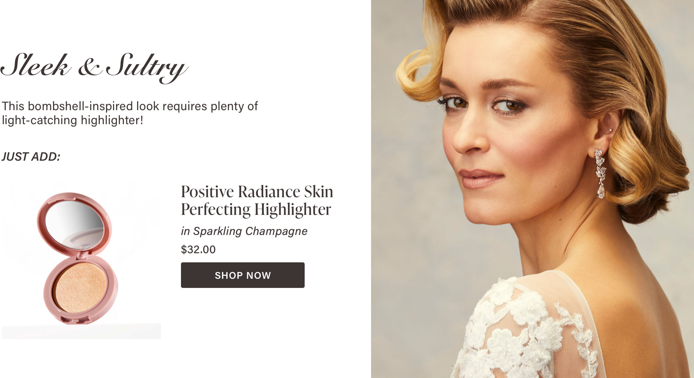 Give eyes an instant lift by sweeping our Evercolor Shadow Stick in Golden Hour (Shimmer) in the inner corners of the eyes and under the browbone to ensure your eyes really pop in photos. The soft, ivory color makes it the perfect bridal highlight too! Just sweep and blend a little on your cheekbones.